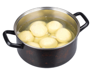 10 dkg lisztet, csipetnyi sót és annyi lobogó forrásban lévő vizet egy tálba adunk, hogy közepes keménységű tésztát kapjunk. Nedves kézzel 2 gombócot formázunk, és forrásban lévő sós vízben kb. 8 percig főzzük.