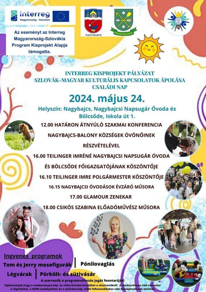 A programok 2024.05.24-én kezdődtek. A szlovákiai Balony testvértelepülés óvodapedagógusai Tovarys Krisztián polgármester úr kíséretében és a Nagybajcsi Napsugár Óvoda és Bölcsőde alkalmazottaival karöltve részt vettek egy szakmai konferencián az óvodában. (Nagybajcs, Iskola u. 1.)