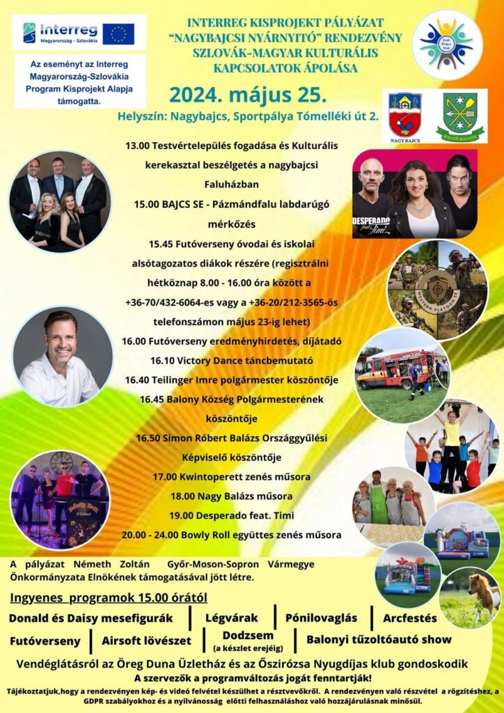 A 2024. május 24-25-én megrendezett kétnapos nagybajcsi nyárnyitó az Interreg Magyarország-Szlovákia Program keretében valósult meg.